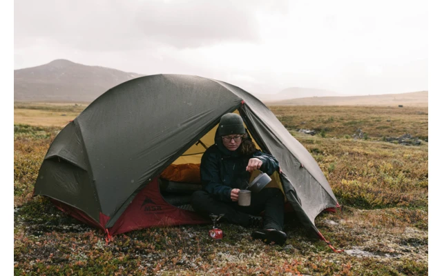 Dieses Zelt ist ideal für Rucksackwanderungen, bei denen es auf Platz und Gewicht ankommt. Das MSR Hubba Hubba für zwei Personen ist sowohl beim Transport als auch bei der Nutzung leicht und effizient. Von der optimierten, symmetrischen Geometrie und dem gerade verlaufenden Boden, der möglichst viel Platz bietet, bis zu den integrierten und verstellbaren Verankerungsschlaufen, die für einen schnellen Zeltaufbau sorgen. Dieses Zelt definiert den Begriff leichte Wohnlichkeit neu. Egal, ob Sie in den Höhen der Alpen klettern oder in den Rocky Mountains unterwegs sind: Das frei stehende, Drei-Jahreszeiten-Zelt Hubba Hubba ist Ihnen ein treuer und zuverlässiger Begleiter.